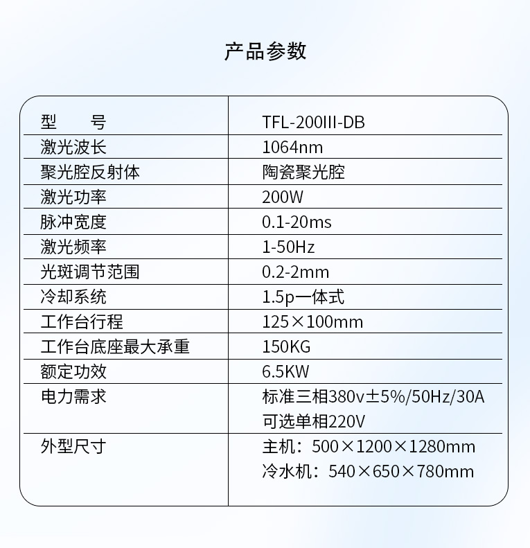 TFL-200Ⅲ-DB型模具激光焊機(jī)是通發(fā)激光公司在TFL-180Ⅲ的基礎(chǔ)進(jìn)行了改良,采用通發(fā)自主研發(fā)的二代精密單燈電源為燈泵浦驅(qū)動電源,操作更方便。主機(jī)具備激光頭手搖升降與工作臺按鈕電動升降實(shí)現(xiàn)焊接不同厚度模具的激光焊加工。本款機(jī)型更適用于各類高精密注塑模具激光補(bǔ)焊,精密塑膠模具零件激光修補(bǔ),塑膠模具鈹銅零件激光燒焊;可對模具使用過程中出現(xiàn)的磨損進(jìn)行激光修復(fù);對機(jī)械加工失誤、電火花加工失誤,模具減膠設(shè)計(jì)變更等需要對模具修改,起到關(guān)鍵的作用,可彌補(bǔ)應(yīng)加工失誤造成的巨大損失。