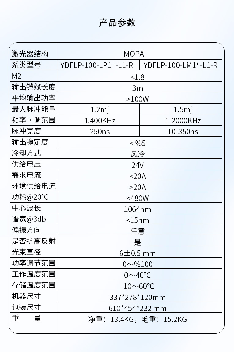 通發激光光纖激光器配置